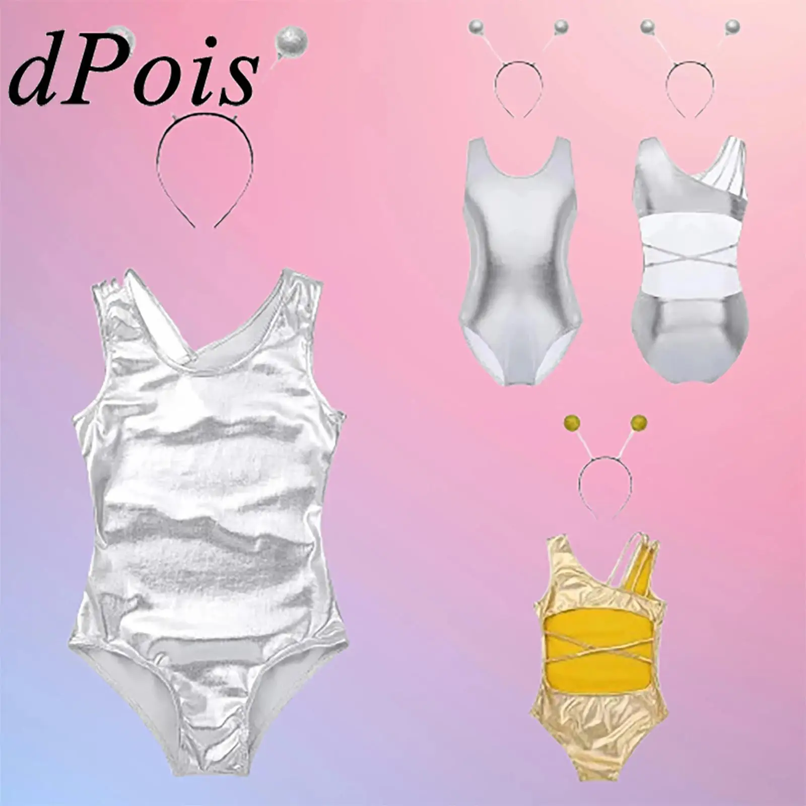 Dívčí cosplais cizinec kostým bez rukávů kombinéza glittery trikot s vlasy obruč taneční oblečení sety pro jeviště představení oblečení