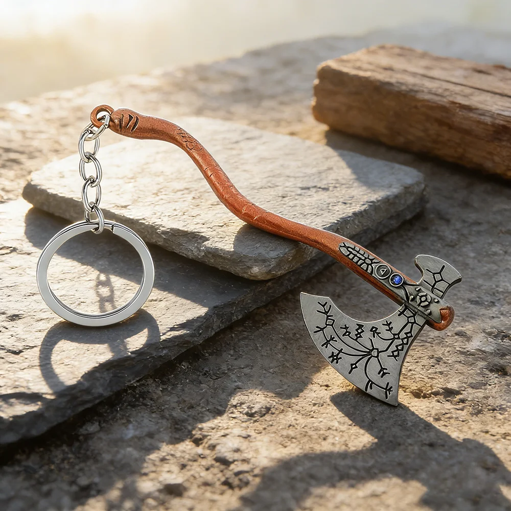 Bůh z válka 4 kratos punková móda šperků sekera keychains broušené sklo vyřezávaný střih sekera přívěsek klíč držák suvenýr sběratelskou