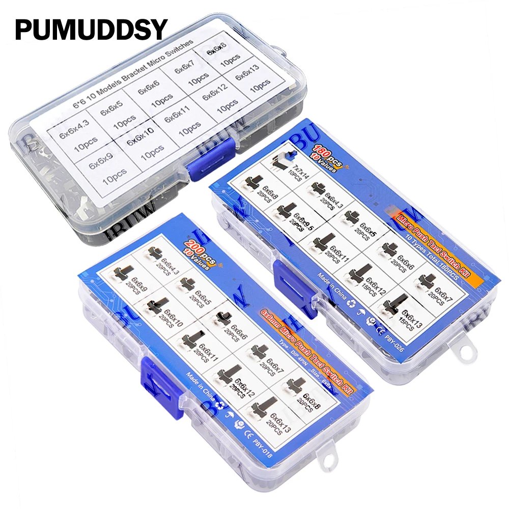 100/180/200PCS 6x6mm mikro strčit hmat spínač souprava 6x6 mini hmatový sponka dotek knoflík PCB (desky plošných spojů) momentální 4pin pushbutton