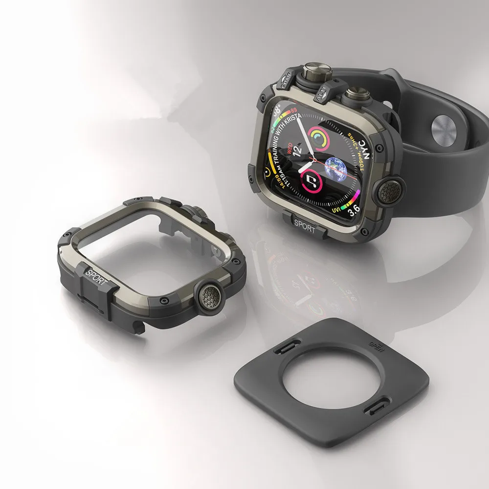 Vojenská toughed kov PC mod pouzdro pro jablko hodinky 9 8 7 6pro SE3 5barvy 4 vodotěsný sklo ochránce slitina knoflík seřídit zakrýt 44mm 45mm