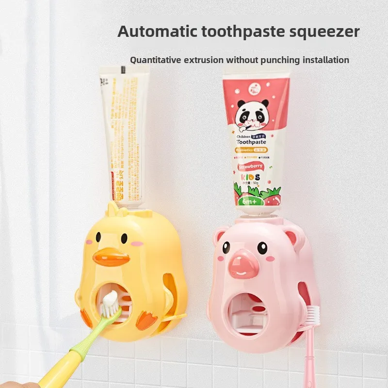 Roztomilá žlutý kachna automatický zubní pasta dávkovač s vestavěný zubní kartáček držák - zeď montuje, lehko stiskat koupelna příslušenství