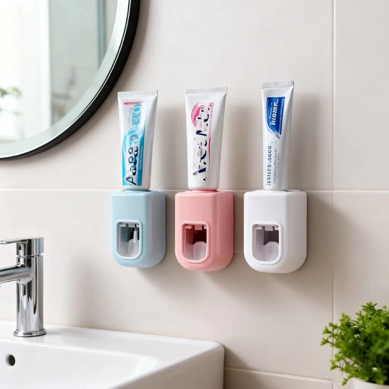 1ks vodotěsný zubní pasta squeezer automatický zubní pasta dávkovač zeď namontovat koupelna koupelna příslušenství zubní kartáček držák