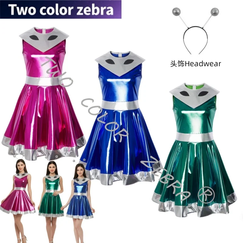 Ženy děti cizinec vlasy obruč vnější mezera legrační cizinec outerspace cosplais kostým themed večírek roleplay kostým karneval šaty nahoře