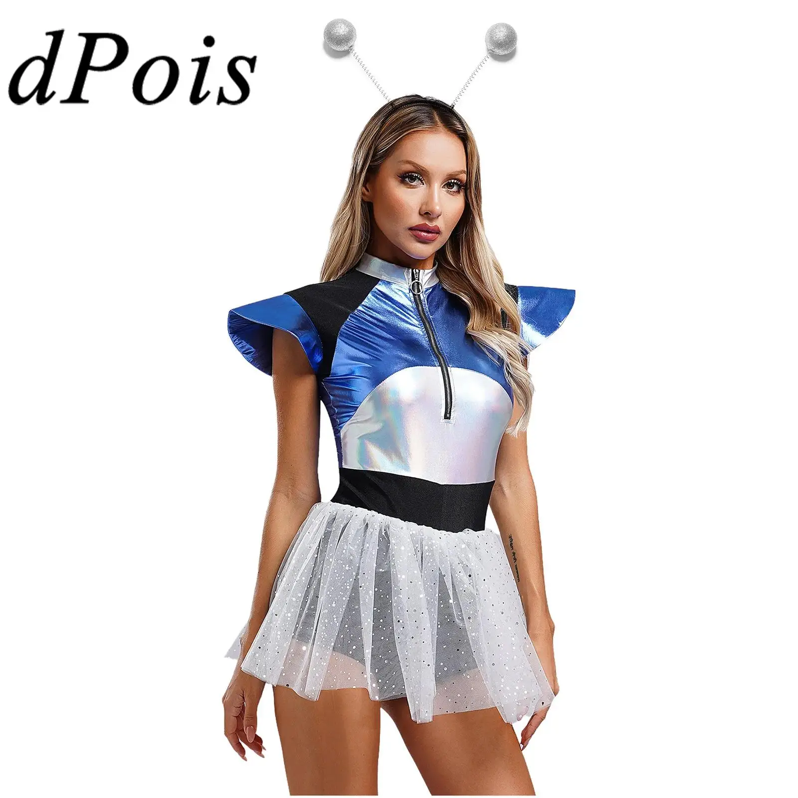 Ženy děti cizinec vlasy obruč vnější mezera legrační cizinec outerspace cosplais kostým themed večírek roleplay kostým karneval šaty nahoře