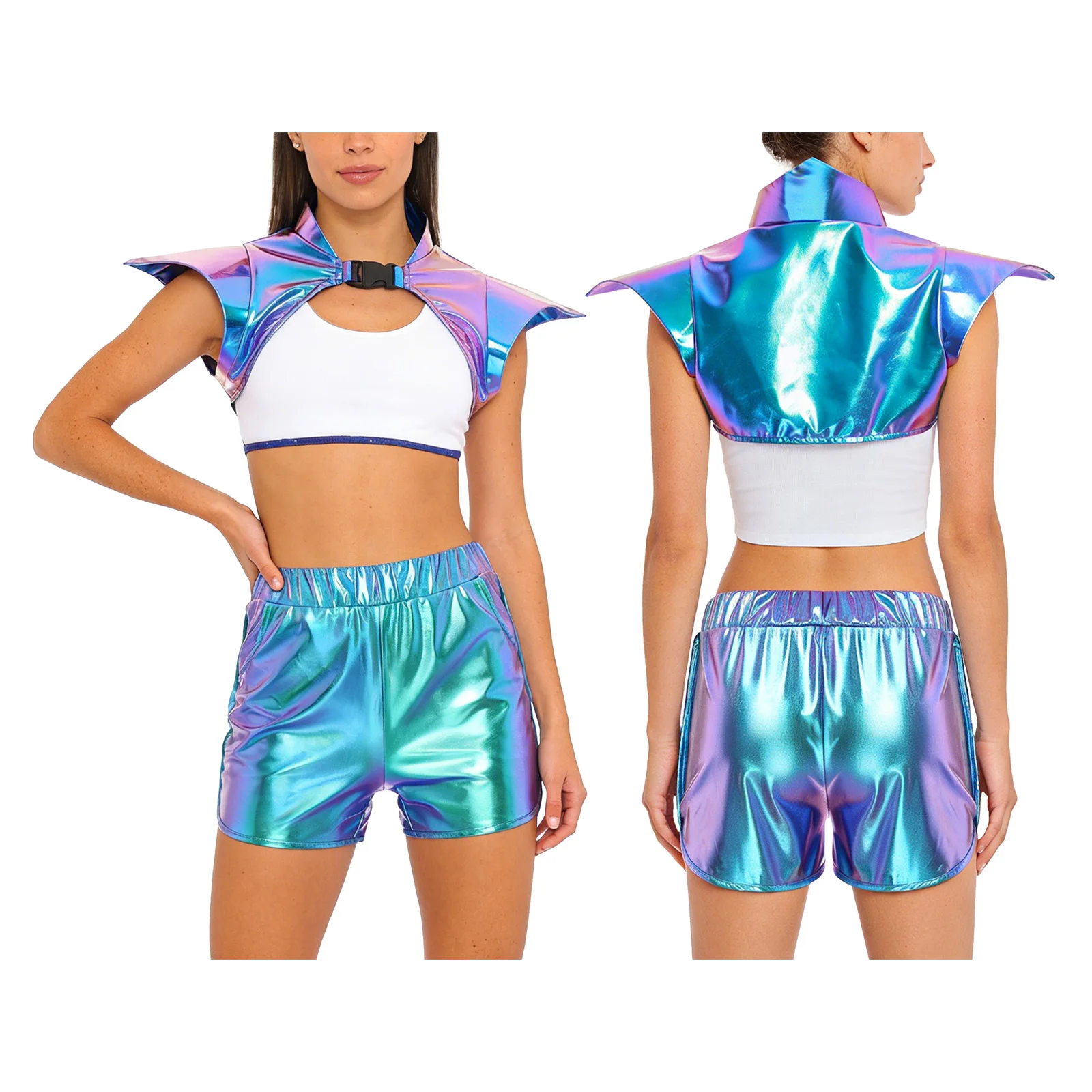 Ženy dva kousky cizinec bojovnice solider cosplais collared pauldron gotický brnění a kapes booty šortky pro raves večírek halloween