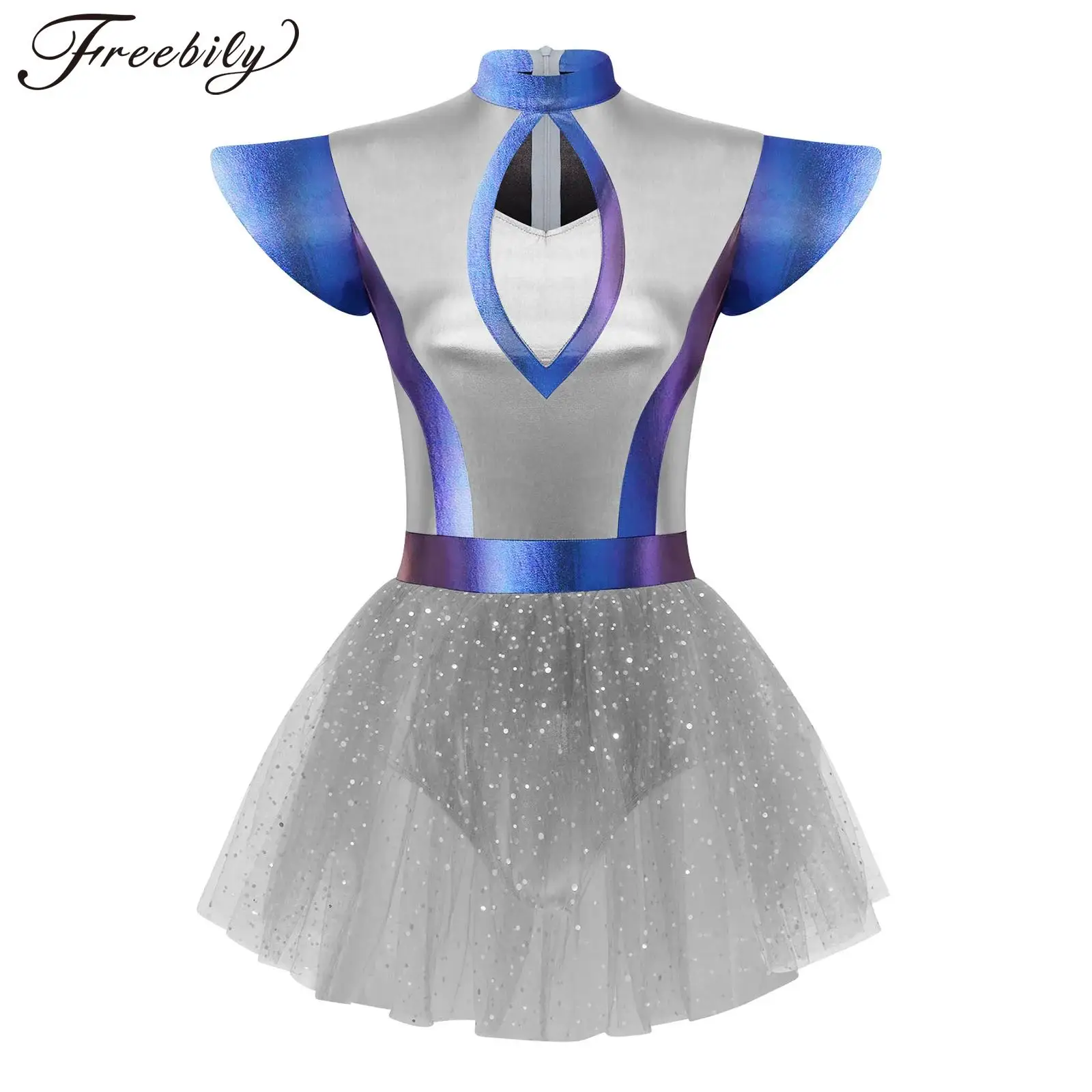 Ženy cizinec kosmonaut mezera bojovnice cosplais kostým metalické lesklý tyl tutu trikot šaty pro halloween bázeň večírek karneval