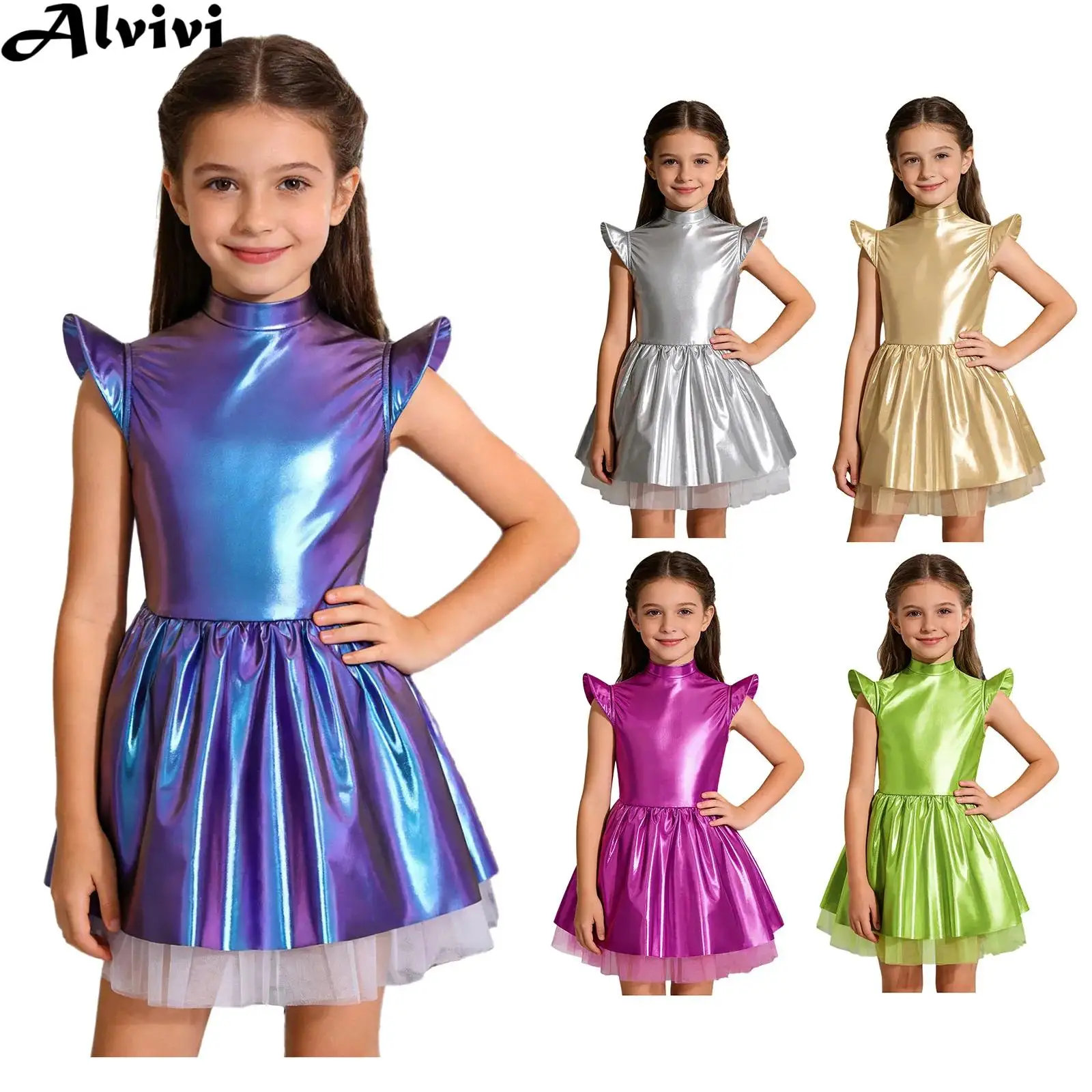 Děti dívčí metalické lesklý džez tančit tutu šaty halloween karneval mezera cizinec robot kosmonaut galaxy bojovnice cosplais kostým
