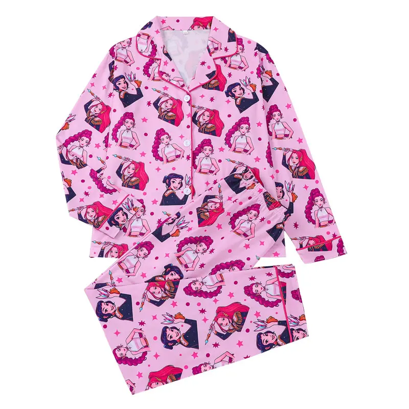 Huntrix K pop děvče bojovnice pyžamo sada pro kůzle děti běs bitevník tisk kreslený top+pant 2pc pyžamo obleček oblečení na spaní látka