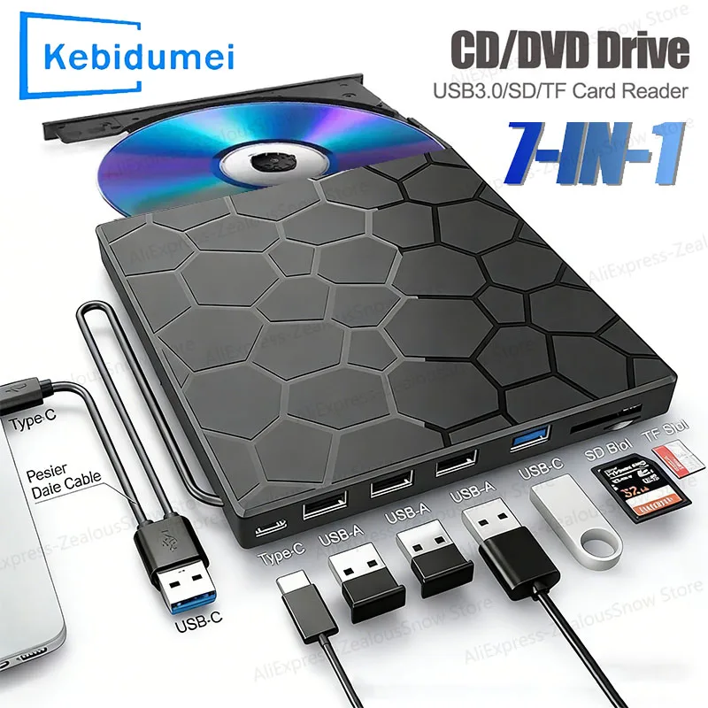 Přenosné DVD hráč 7 v 1 externí CD/DVD RW pohon USB 3.0 typ C cédéčko palič externí kotouč pohon pro plocha maca okna linux