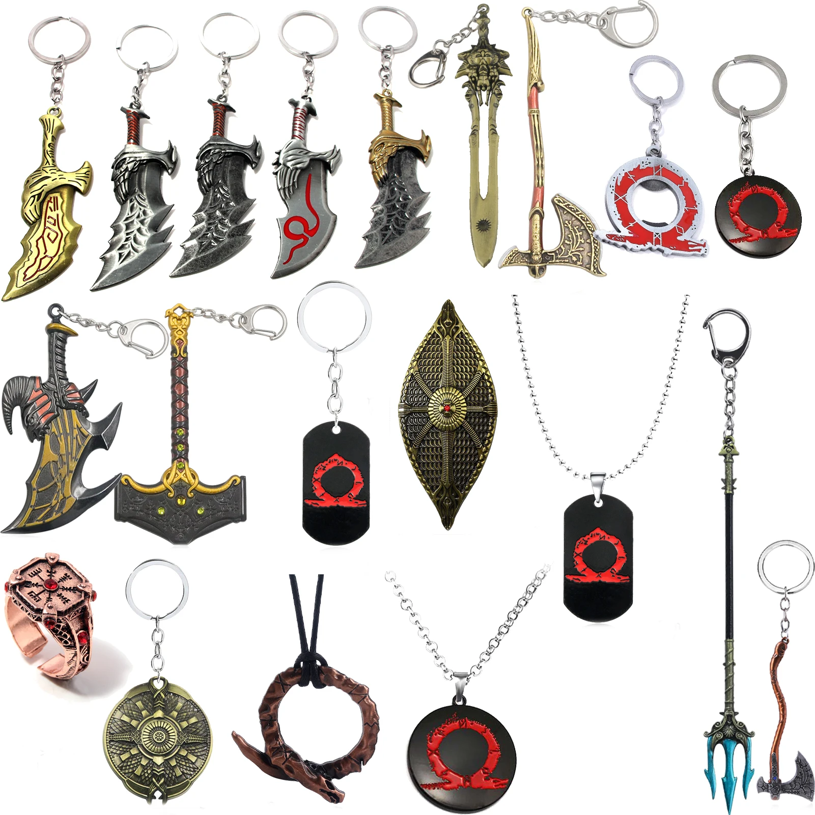 Hra bůh z válka 5barvy ragnarok keychains thor's kladivo mjollni kratos ostří z exil leviatan sekera erb přívěsek kroužek na klíče šperků