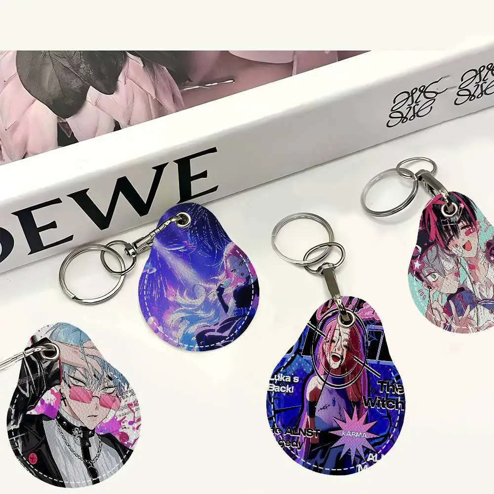 Anime a-alien s-stage muži a womenn univerzální antirust klíčenka PU learther přístup karta držák kapat klíč visačka prsten