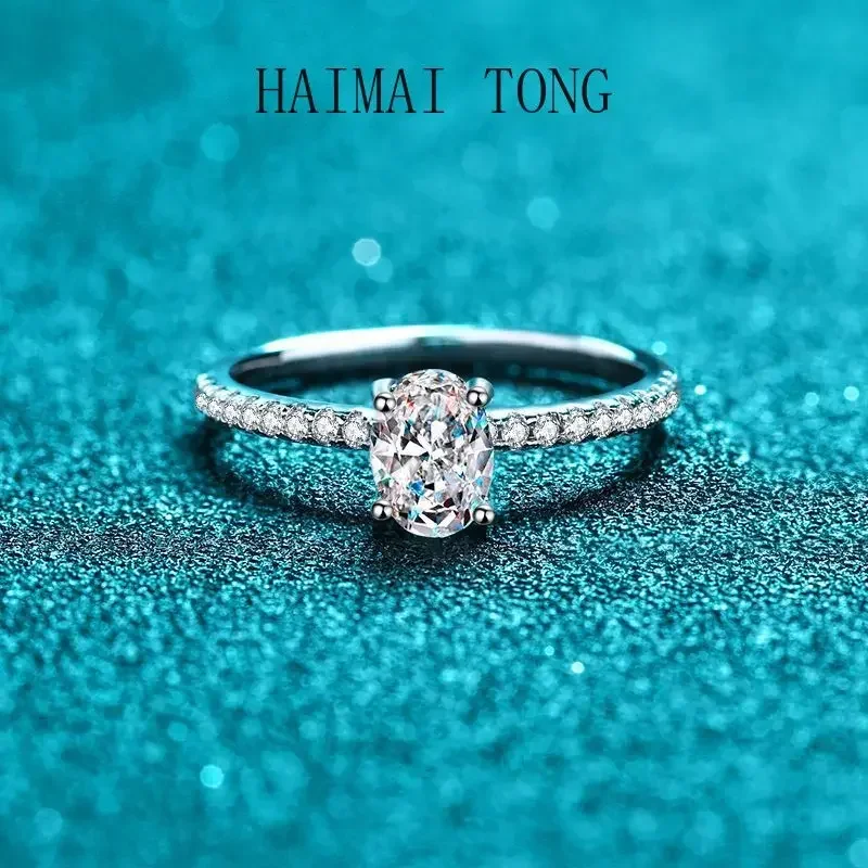 HAIMATONG PT950 platina ženské holubí vejce návrh diamant prsten s cizinec holubí vejce tvarované moissanite prsten a certifikát