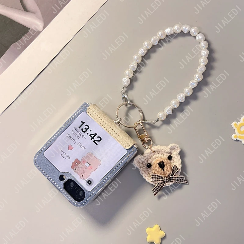 Roztomilá medvěd cizinec perla náramek prsten kůže stánek telefon pouzdro pro Samsung galaxy Z převrátit 5barvy 6pro , zflip6 zakrýt