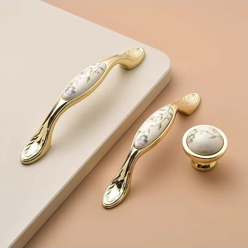 Nepopsaný zlato kuchyň skříň madla keramika šatník prádelník táhne zlatý moderní šuplík knoflíky lehký luxusní nábytek hardware