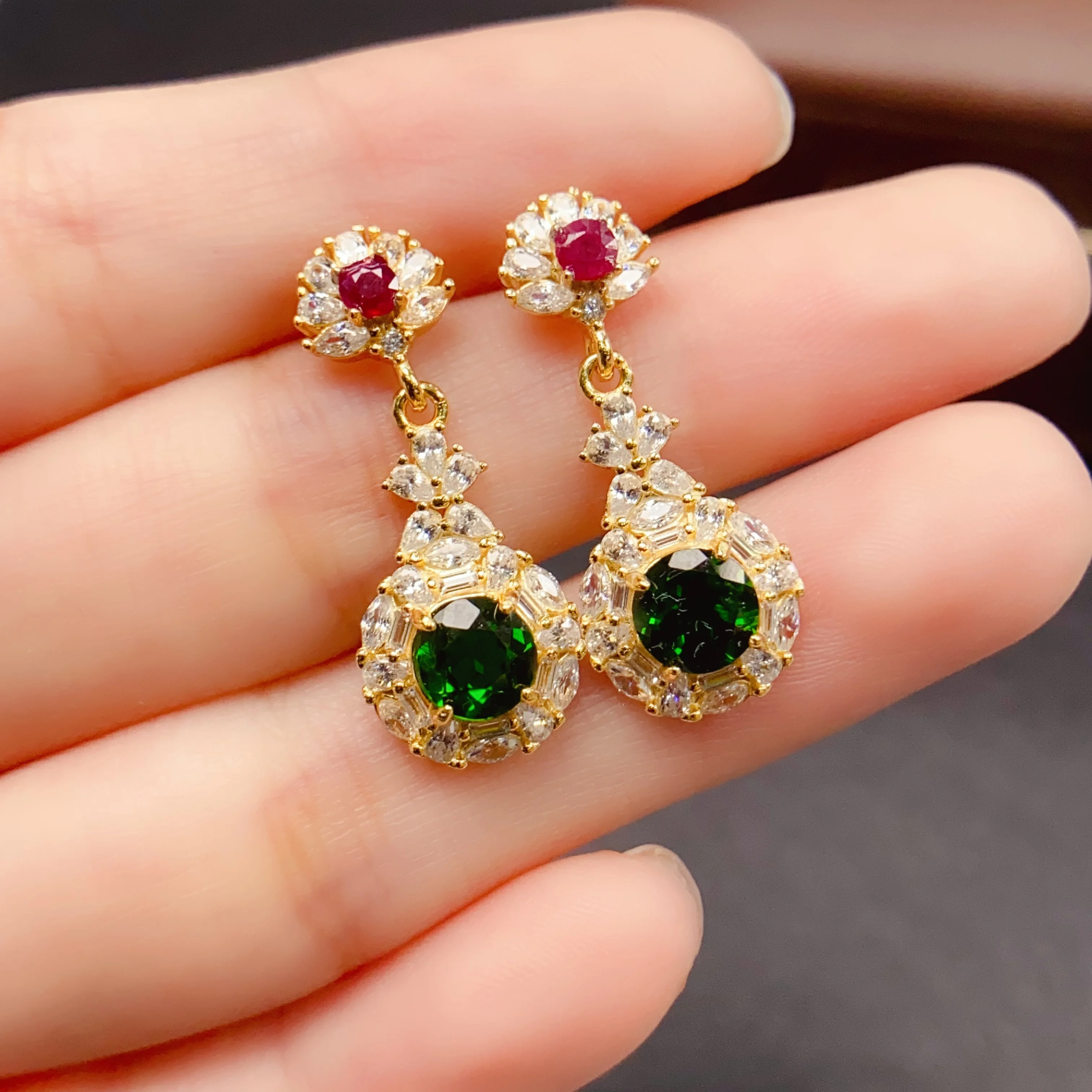 Přírodní rubín diopside náušnice S925 mincovní stříbro certifikát design jemný móda půvab svatby šperků pro ženy FS