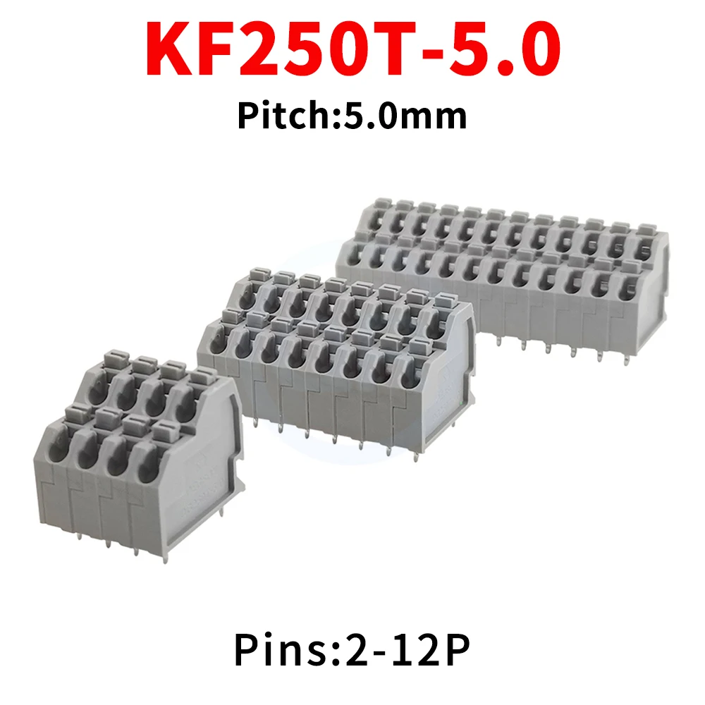 10 ks 5.0mm jaro naložený strčit typ dvojitý rvát se špendlík bezšroubové PCB (desky plošných spojů) svorka blok KF250T 2-12pin