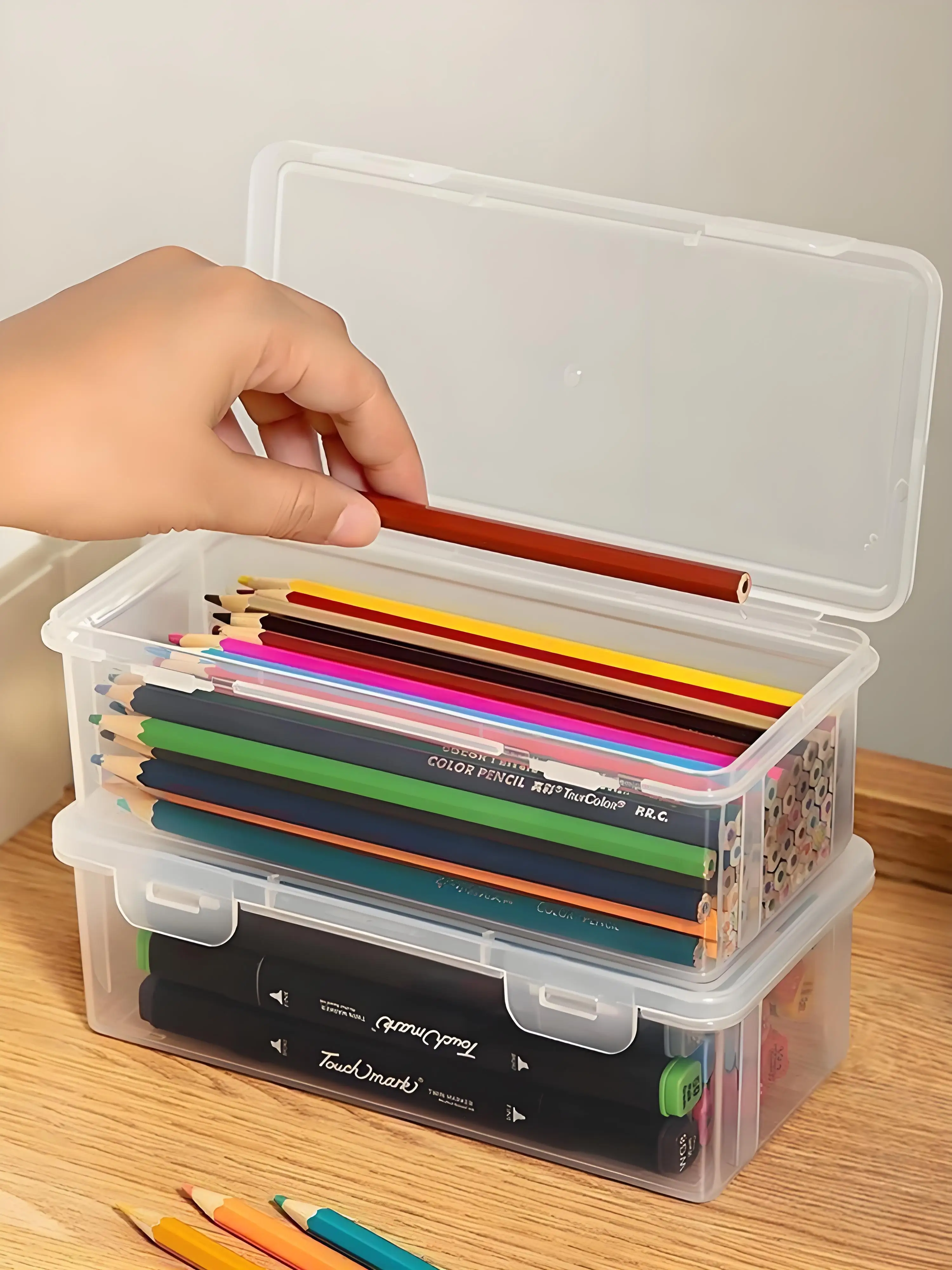 1/2pcs PP velký schopnost průhledná papírnictví úložný skříňka barva tužka pastelka papírnictví šuplík položku úložný skříňka