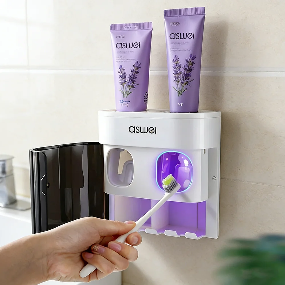 Zubní kartáček držák zeď montuje UV ultrafialové záření automatický zubní pasta dávkovač chytrý zubní pasta extrudér úložný držák