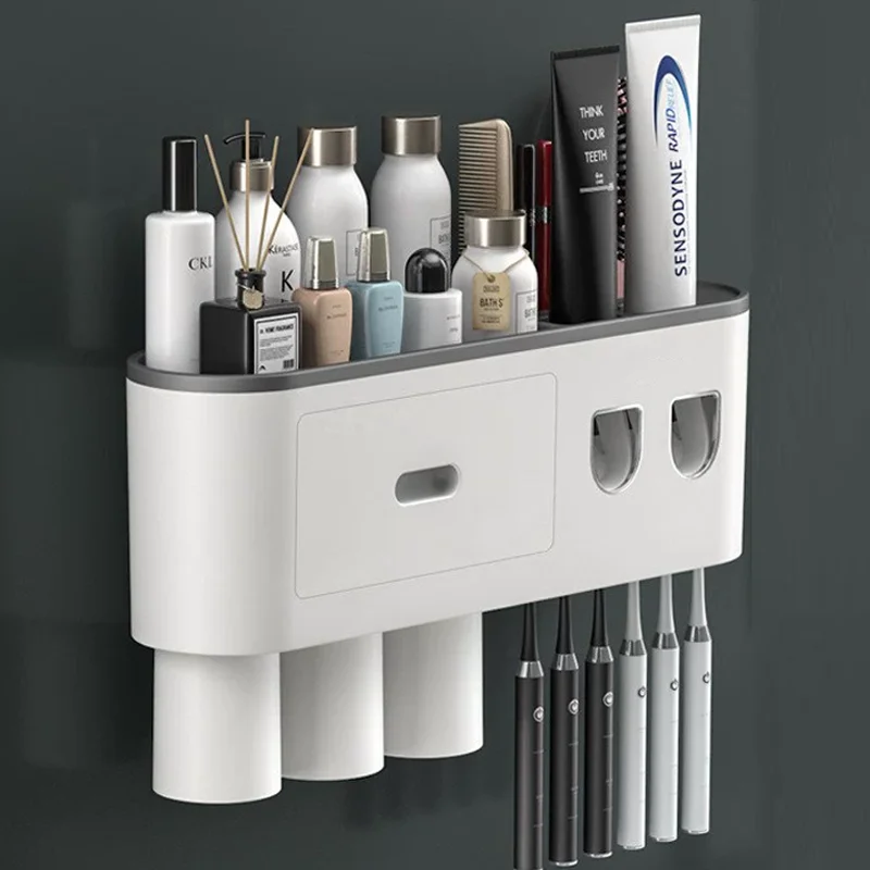 Zeď montuje automatický zubní pasta squeezer zubní pasta dávkovač magnetický zubní kartáček držák zubní pasta presser domácí příslušenství
