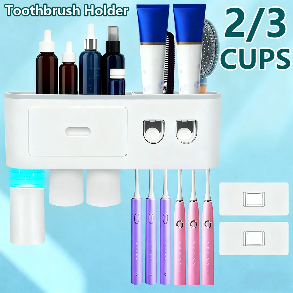 2/3 kelímky zubní kartáček držák zeď montuje zubní kartáček organizátor s automatický zubní pasta dispensers koupelna kosmetický úložný držák