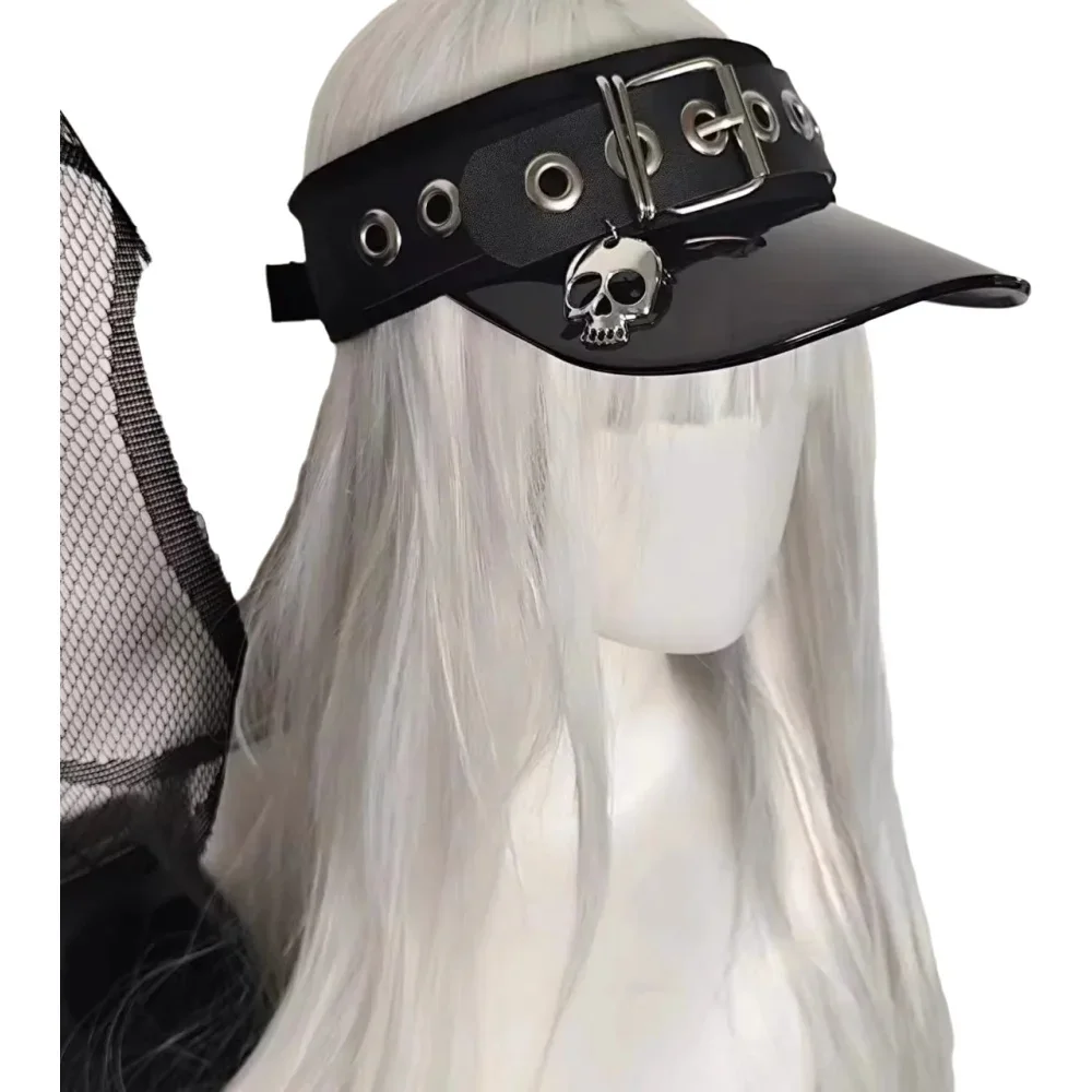 Lebka baseballová čepice 2000s punková subkultura low-profile no-top slunce čepice s číslo jednotné kůže spona a jelly-like krempou open-top čepice.