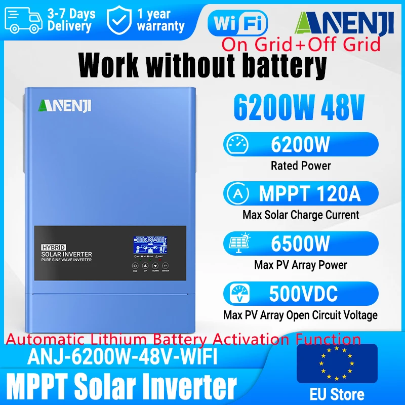 ANENJI 6.5kva 6.2KW 48V hybridizace solární invertor 230vac čistý sinus vlna na mřížka fotovoltaických s 120A mppt solární nabíječka PV 500V