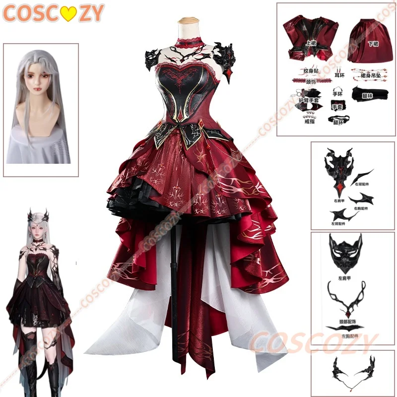 Hra láska a deepspace hráč hrdinka cosplais kostým paruka zayne xavier rafayel průrva dominator uniforma sexi červená šaty žena