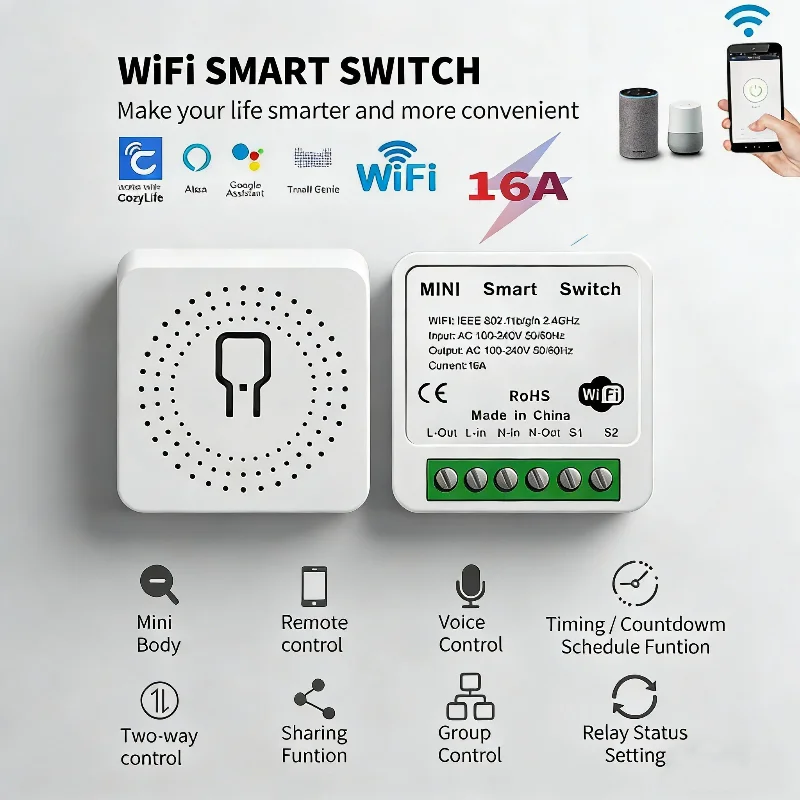 16A mini WIFI chytrý spínač APP daleký ovládání hlas ovládání via alexa google asistent DIY lehký jistič pro chytrý domácí přístrojů