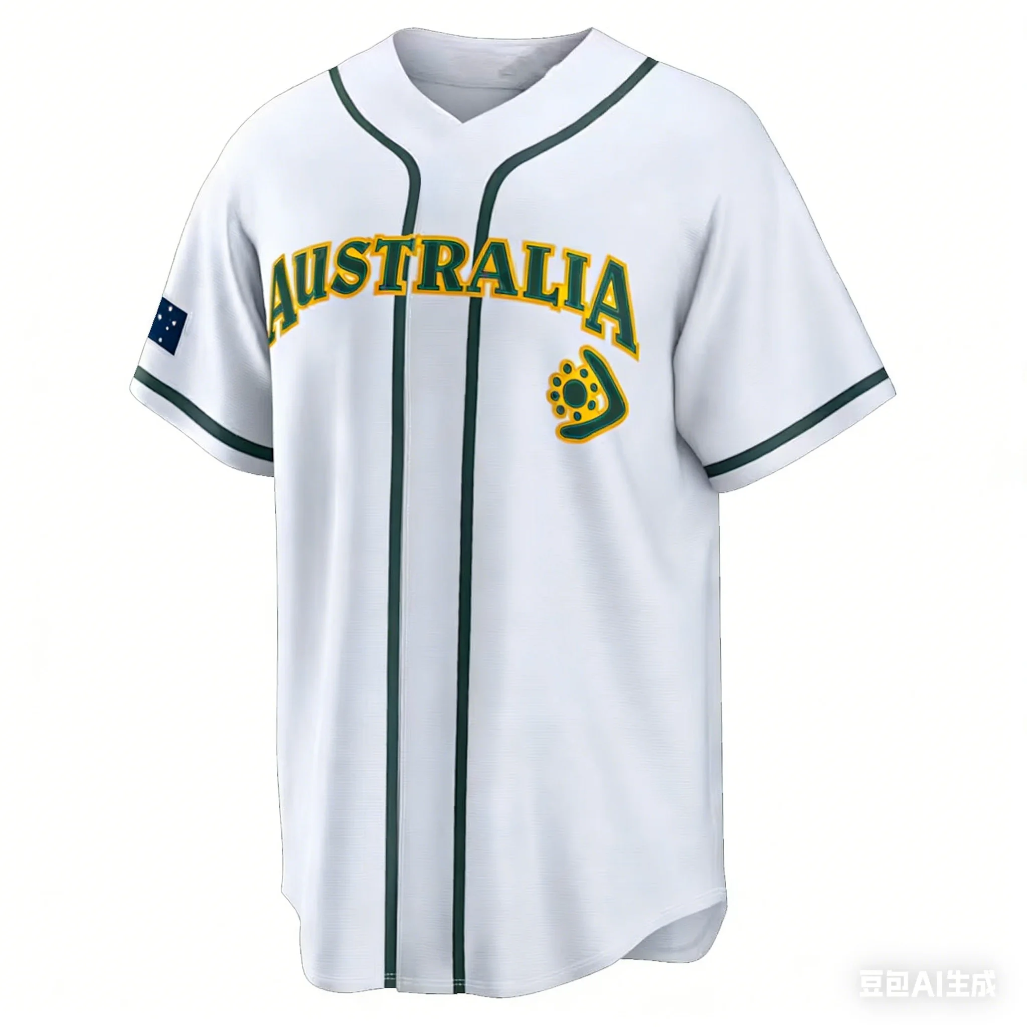 Pánské austrálie baseballová dres v-neck krátký rukáv knoflík shodit košile australan standarta náplast sportovní uniforma hra den pouliční oblečení