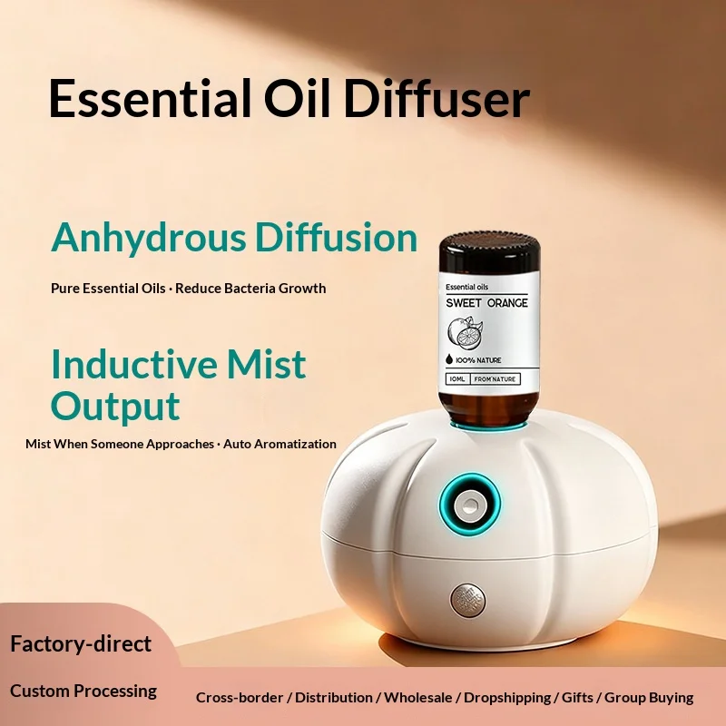 Roztomilá tykev bezdrátový podstatný mazat difusor - waterless ultrazvuková vůní difusor, automatický senzor rozprašovací podstatný mazat palič, přenosné domácí vůní zvlhčovač