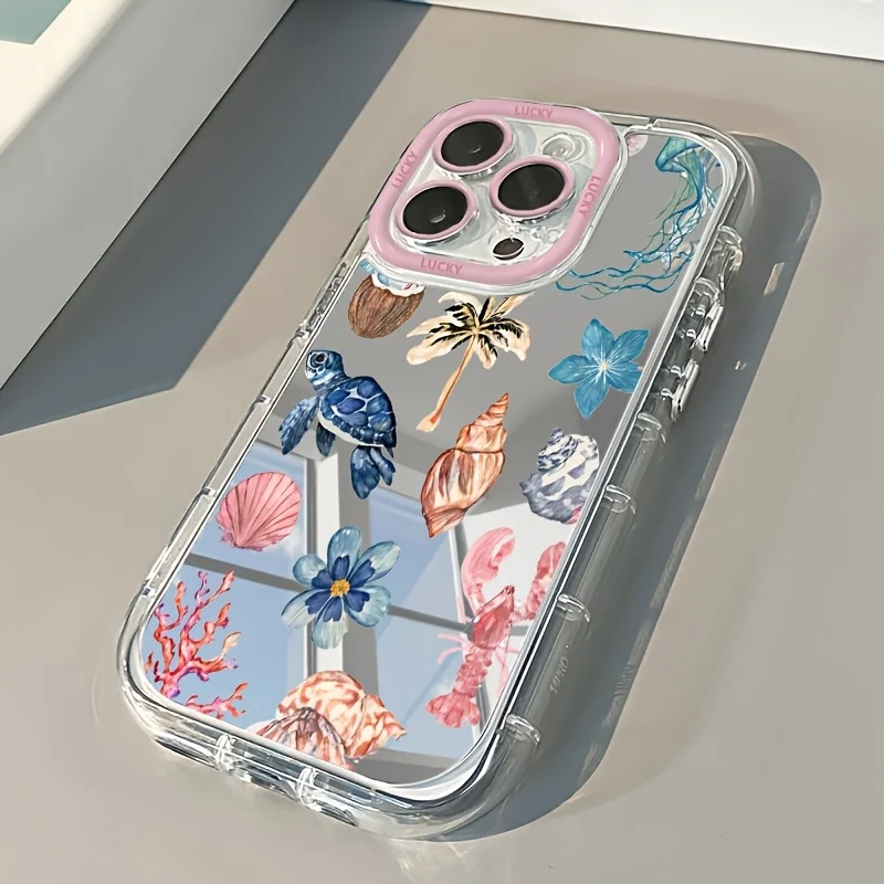 Mořská želva lodní elementy telefon pouzdro pro iPhone 11pro 12 13 14 15 16 17 pro maxi 16E 17air 7 8 plus XR X XS móda zrcadlo zpět zakrýt