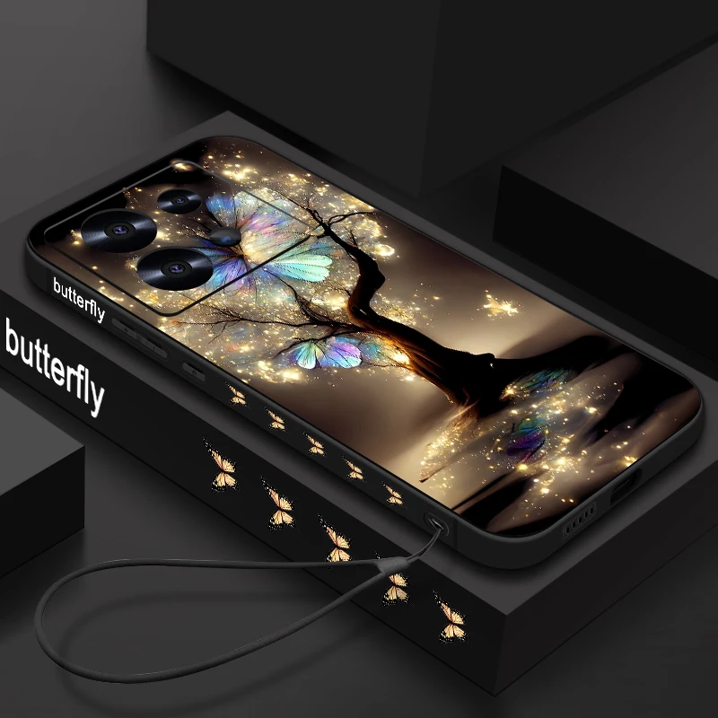 Šňůrka na krk štíhlý tpu telefon pouzdro pro Xiaomi poco X6 X5 pro poco M6 pro C65 nárazuvzdorné motýl strom střih měkké silikon zpět zakrýt