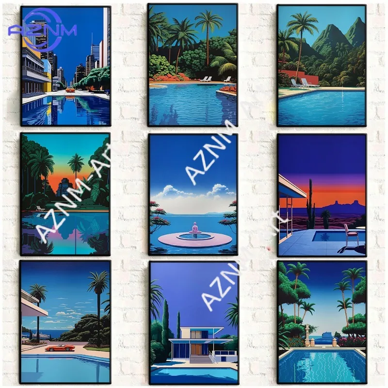 Vintage hiroshi nagai pop plakát retro 80's pláž léto kaluž surrealismus plátna malba zeď umění pro žití pokoj domácí dekorace