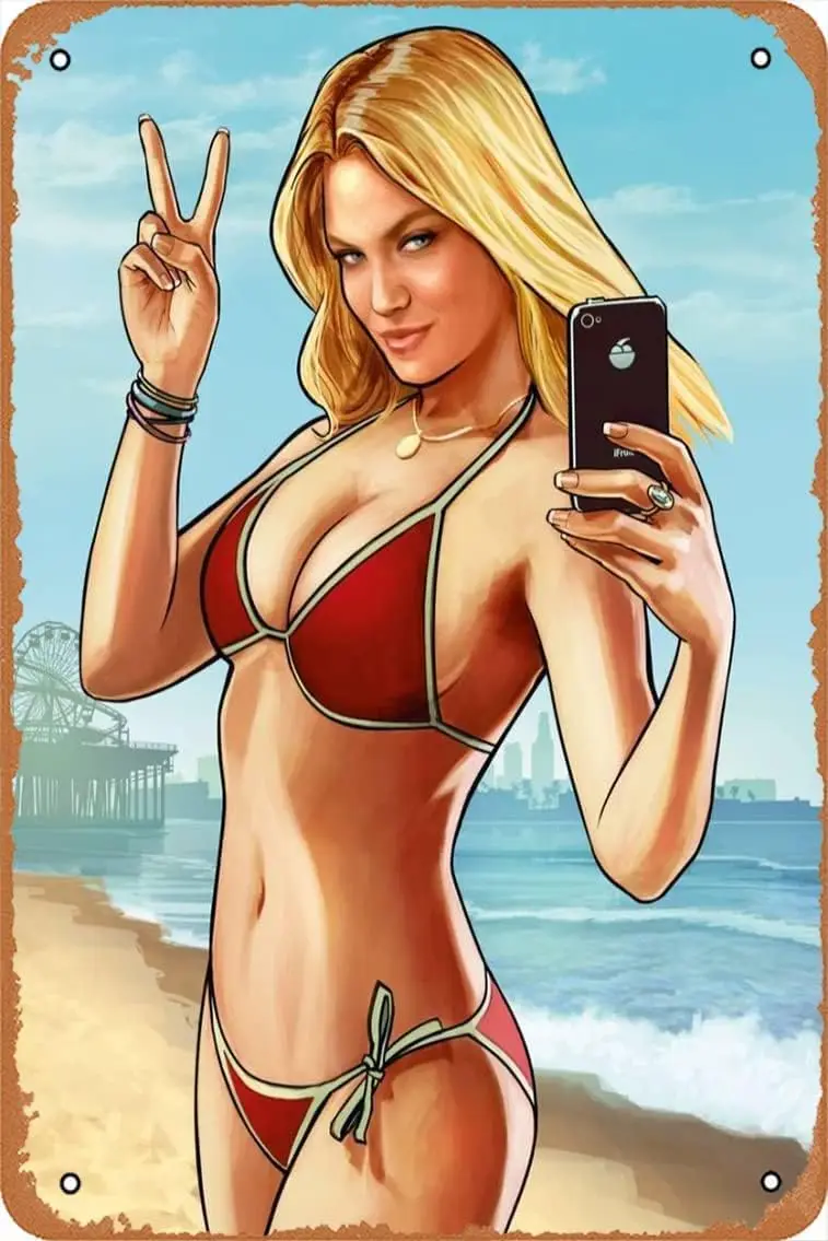 Klasický dekorace plakát hra GTA 5barvy pláž děvče hra plakát plechovka značka zeď dekorace legrační retro pult káva hospodě dar zeď dekorace značka -alum