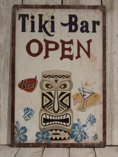 M1, tiki pult otevřený plechovka značka kov plakát tropické pláž večírek vintage rustikální hele xz-aluminum