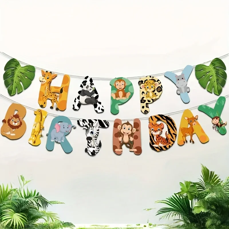 15pcs/set džungle safari narozeniny večírek prapor sada papír materiál "happy birthday" dopisy pokoj dekorace a večírek zásoby