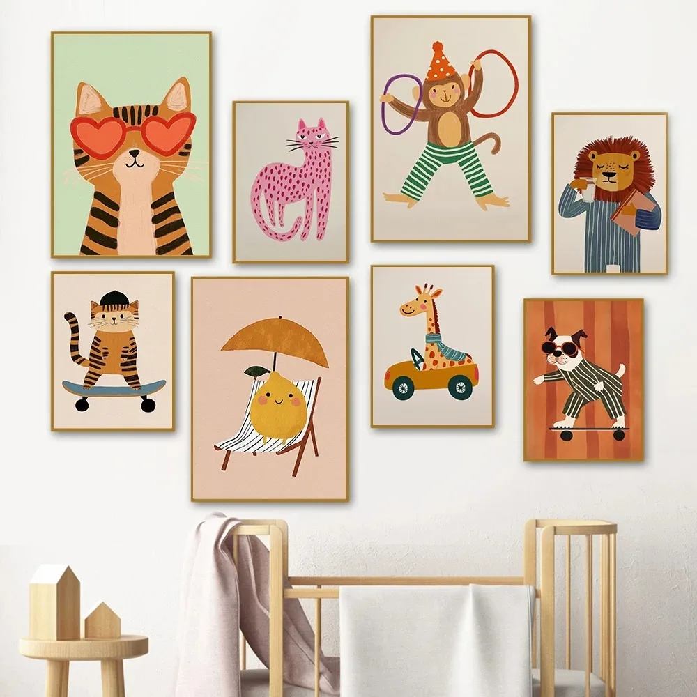 Cirkus opice zeď umění narozeniny večírek dekorace pokoj umění dětský pokoj plátna malba safari živočich plakát lev žirafa pes