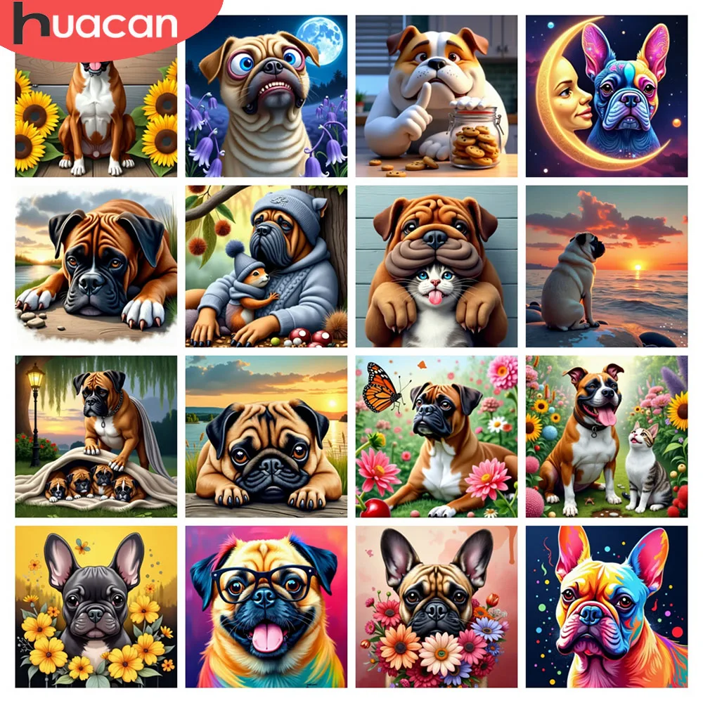 HUACAN diamant malba pes živočich kvést kříž steh domácí zeď dekorace 5D DIY diamant mozaika mops německý boxer plný čtverec kolo vrtačka