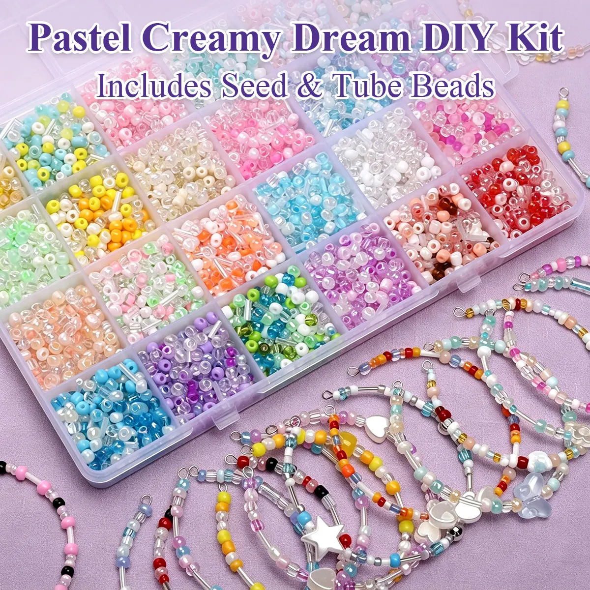 24 mřížka smíšené rozměr sklo semeno & trubice korále sada, 2/3/4mm pastelové krémová šperků vytváření souprava pro DIY náramek řetízek řemeslo dar