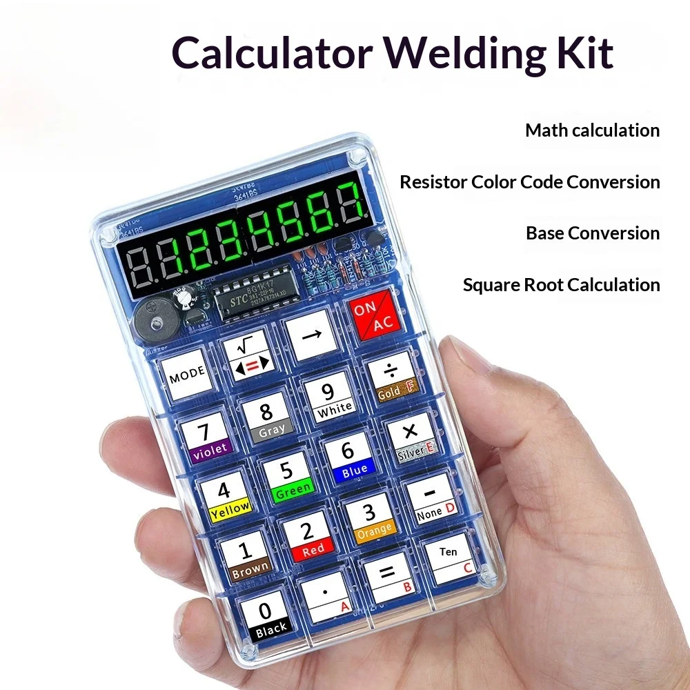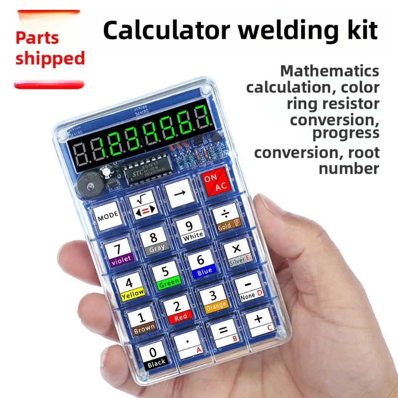 Elektronický uvedení tvoření kalkulačka, DIY dřík souprava, po jednom čipem jednočipový počítač sváření, student ruka spojování, interesti