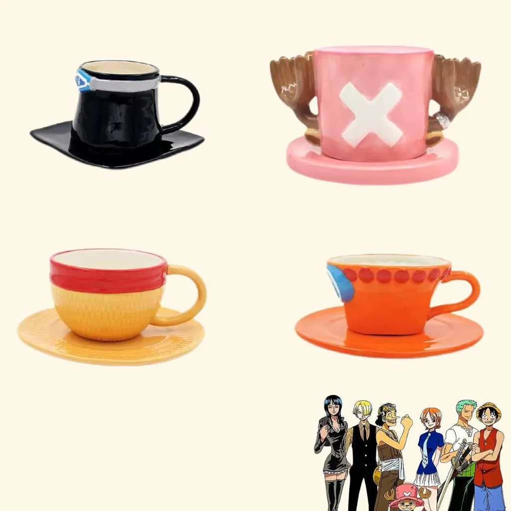 Jeden kusu povaha keramika pohár podšálek sada 4ks anime kreslený roztomilá čepice klakson střih káva čaj hrneček dar skříňka dekorace sbírání