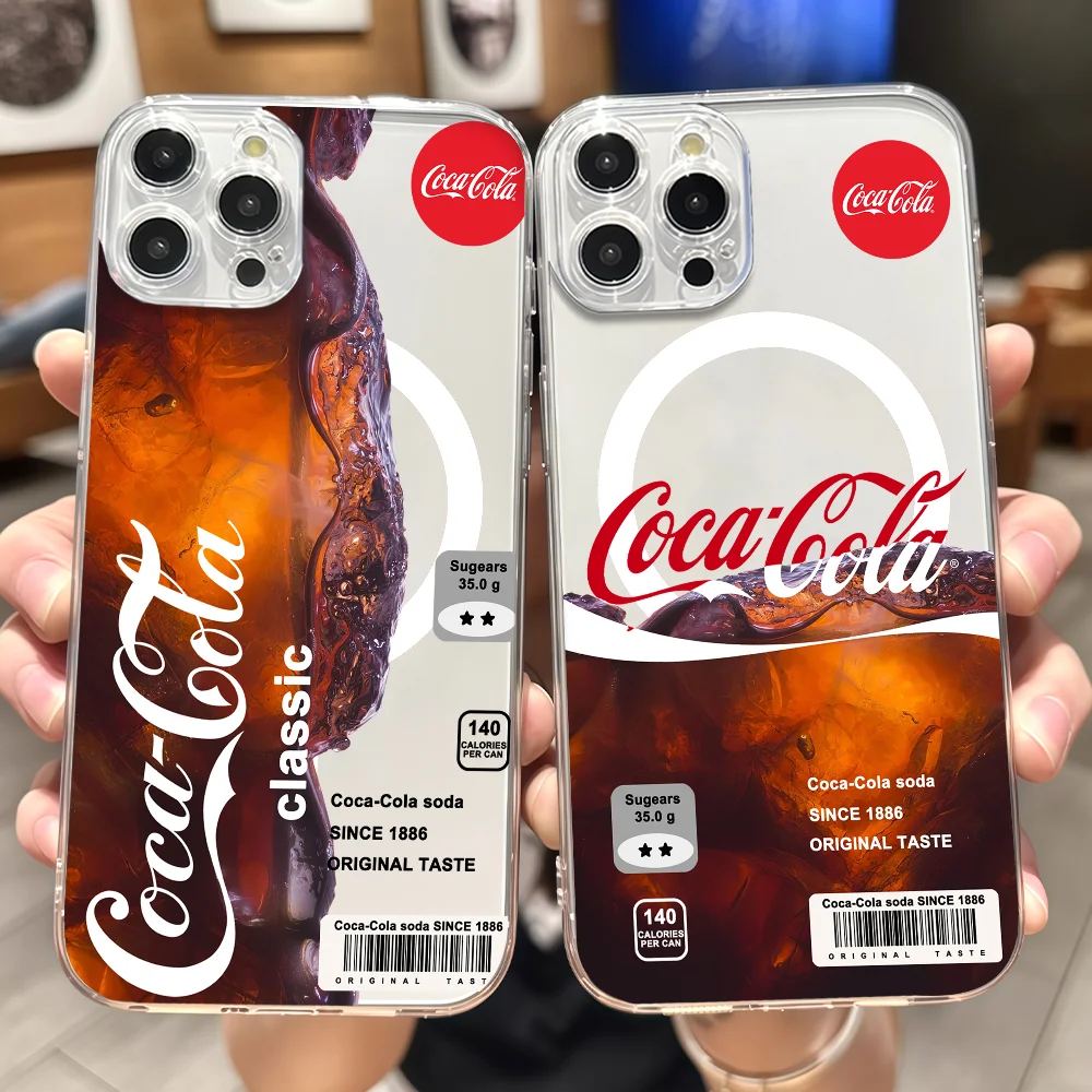 Móda c-coco-cola telefon pouzdro pro iPhone 12 11pro 13 14 15 16 17 maxi pro plus vzduch mini magnetický průhledná silikon měkké pouzdro