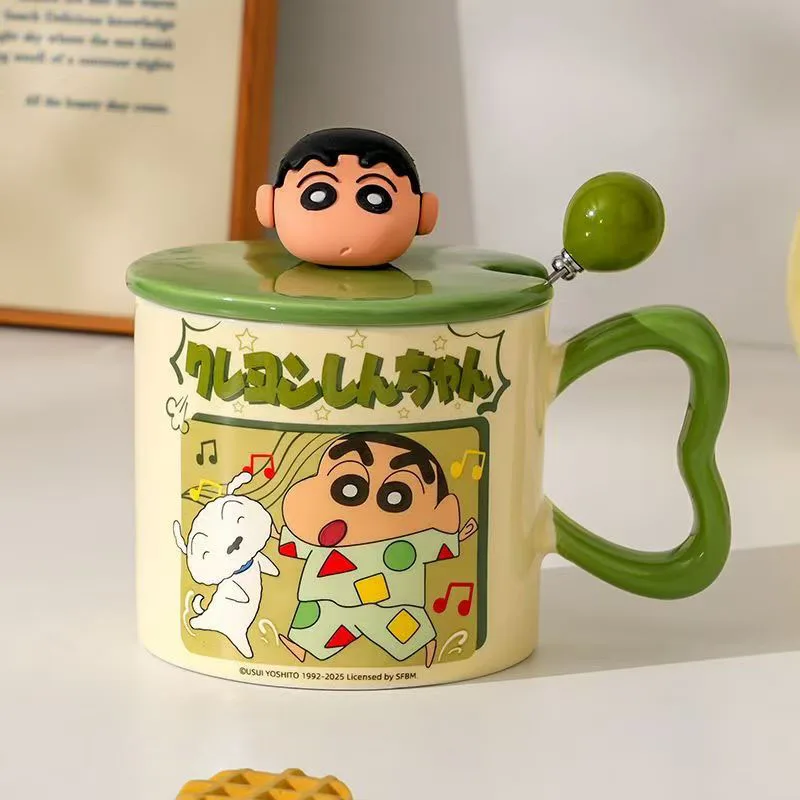 Kawaii roztomilá pastelka shin-chan keramika hrneček s kryt a lžíce roztomilá anime káva pohár pro fanoušci dar domácí úřad