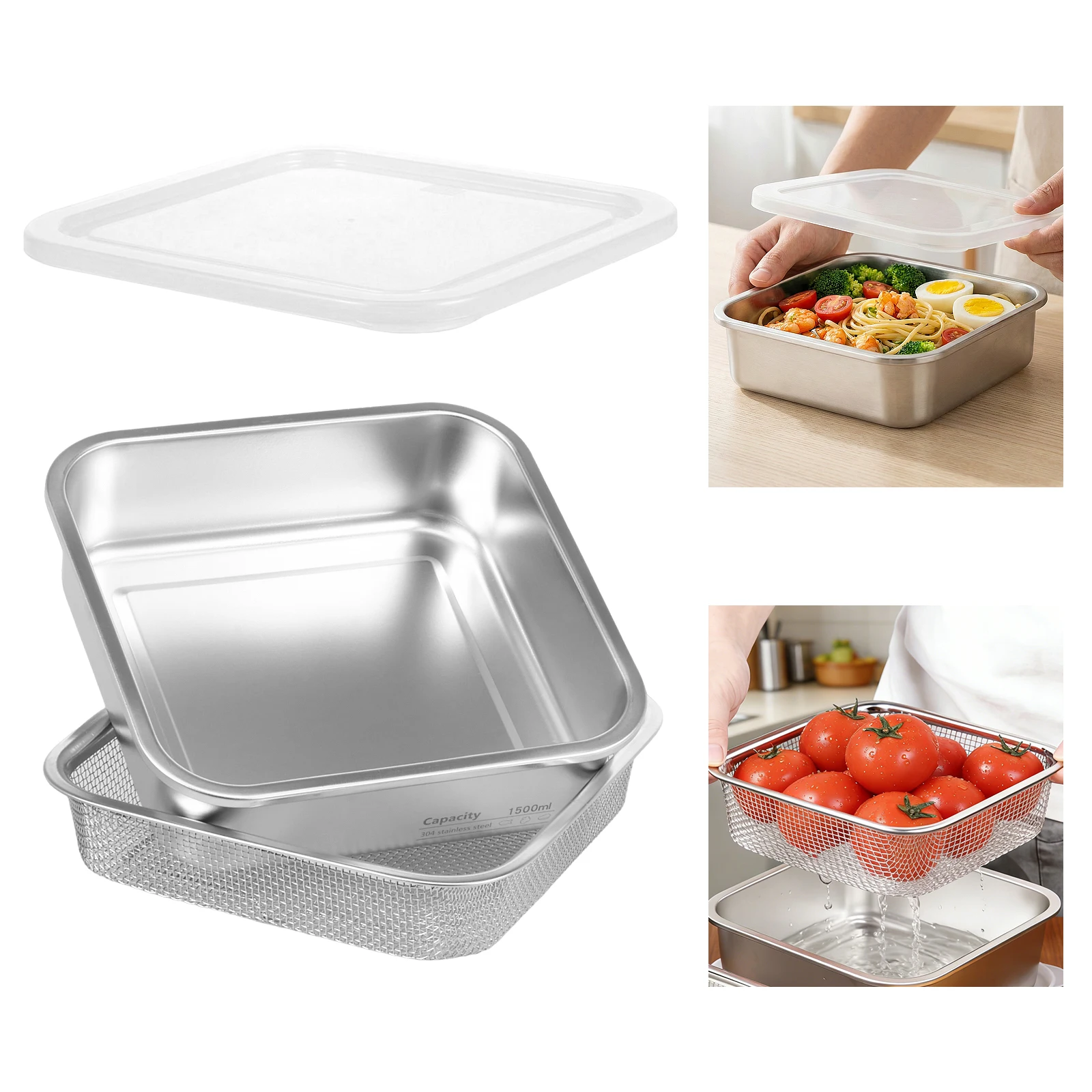 2se v 1 mytí nahoře miska nerez ocel jídlo skříňka s cedník víceúčelový kuchyň zelenina bazén stohovatelná znovu použitelný pro piknik