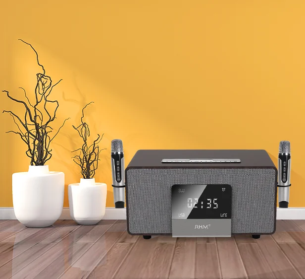 RHM K222 bezdrátový aktivní brian wayne transeau karaoke subwoofer reproduktor s dva mini dřevo mikrofony večírek počítač domácí divadlo mobilní telefon