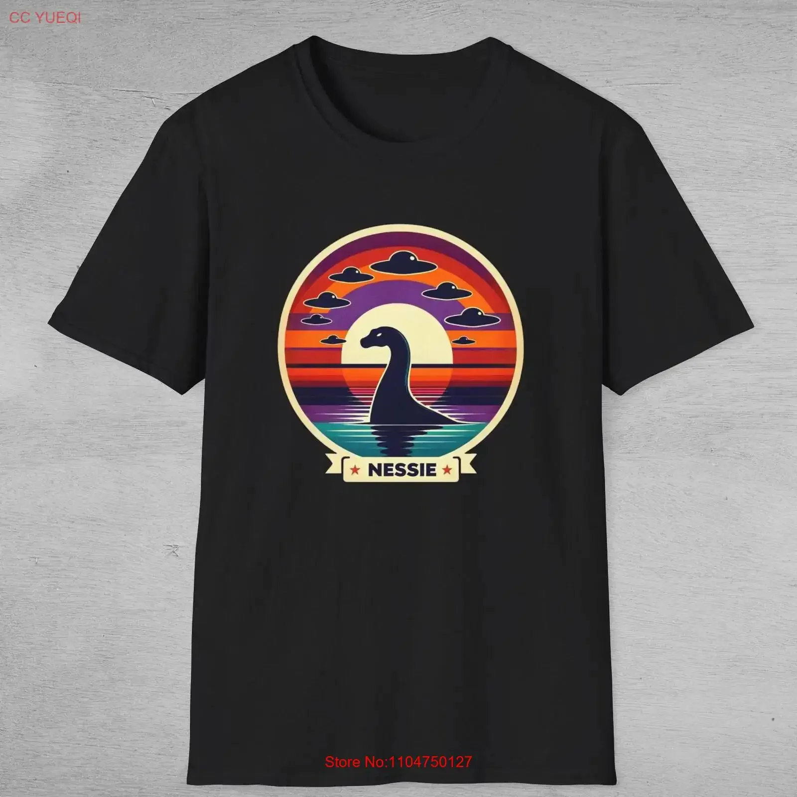 Nessie UFO T košile cryptid západ slunce mythical loch ness sci fi nestvůra skotský folklór vintage sepraná stylové homme jemně