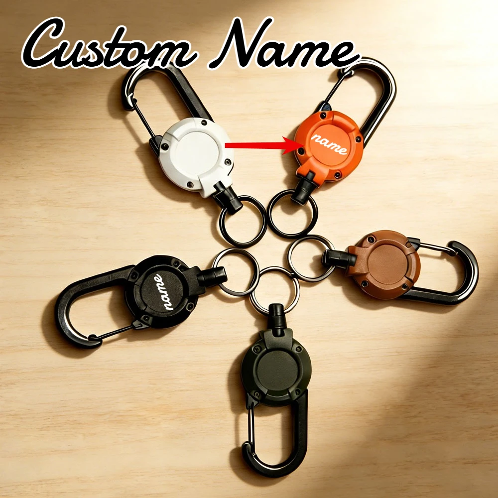 Nestandartní jméno nerez zatažitelný outdoorové kemping lano kroužek na klíče proti krádeži EDC klíčenka karabina šňůrka na krk klíč běžící pás prsten dar