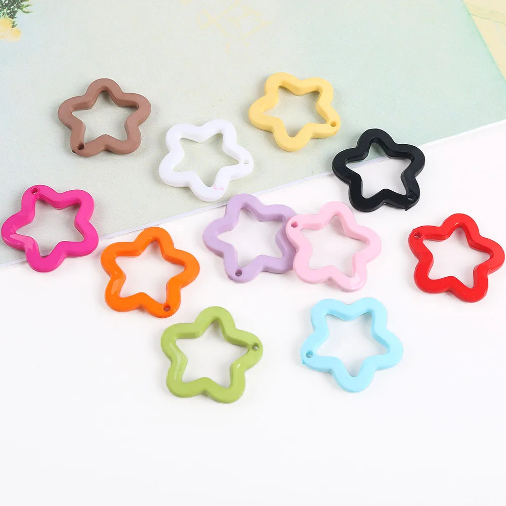 10ks vícenásobné barvivo akryl hollowed-out pěticípá hvězda volné korále náramky náhrdelníky klíč řetězy přívěsky DIY příslušenství