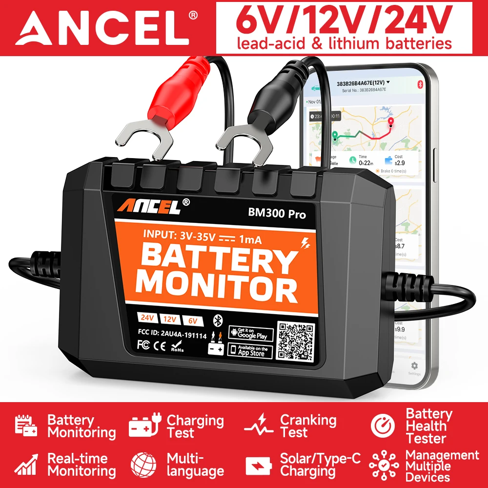 ANCEL BM300 PRO brian wayne transeau 5.3 auto baterie monitor, 6V 12V 24v tester s soc/health/charging test & ip67 pro auto kamion motocykl