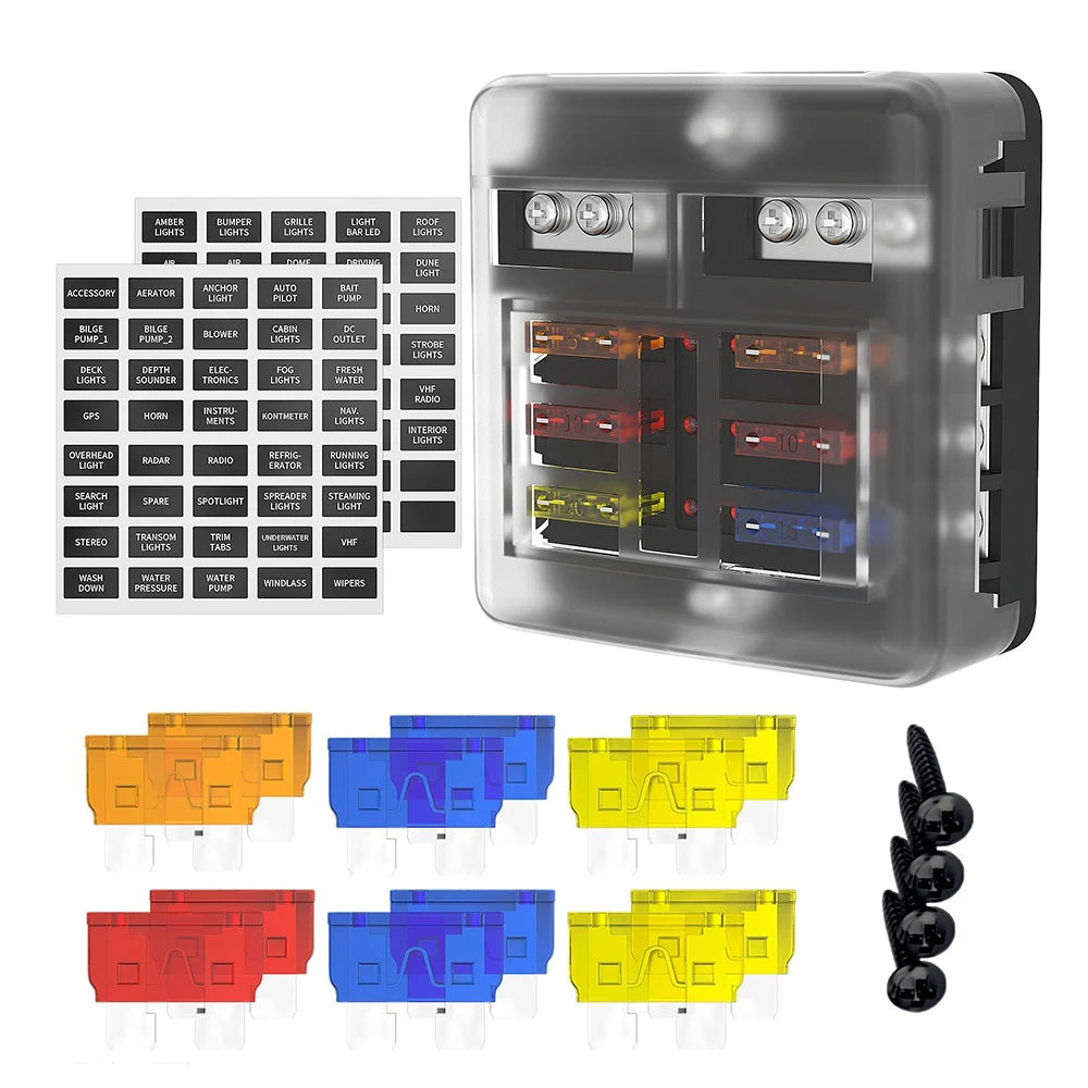 Univerzální auto loď tavná pojistka skříňka držák s 6pro způsobů 30A čepel tavná pojistka držák blok upozornění indikátor 12V energie distribuci panel deska